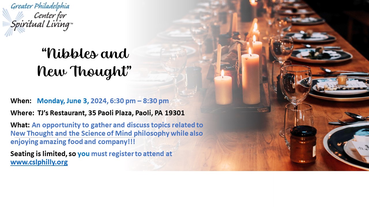 Registration for "Nibbles & New Thought" Monday, June 3, 2024 in person event