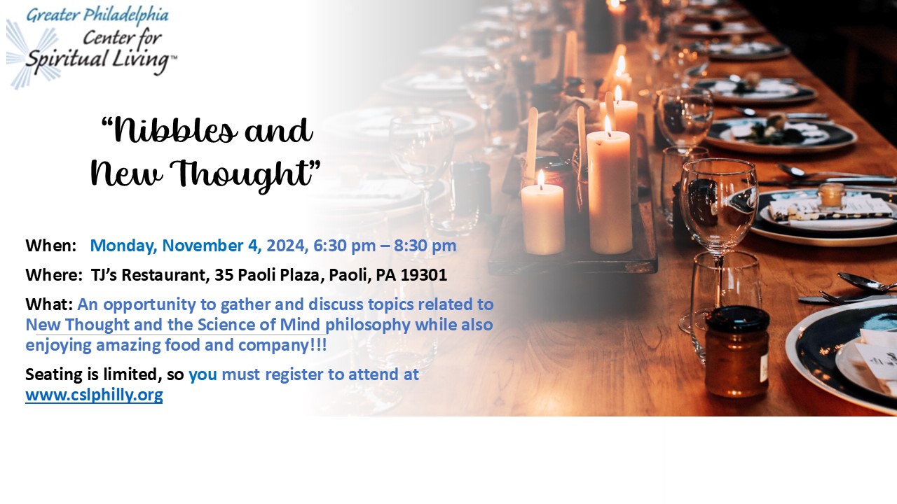 Registration for "Nibbles & New Thought", Monday, November 4, 2024 in person event