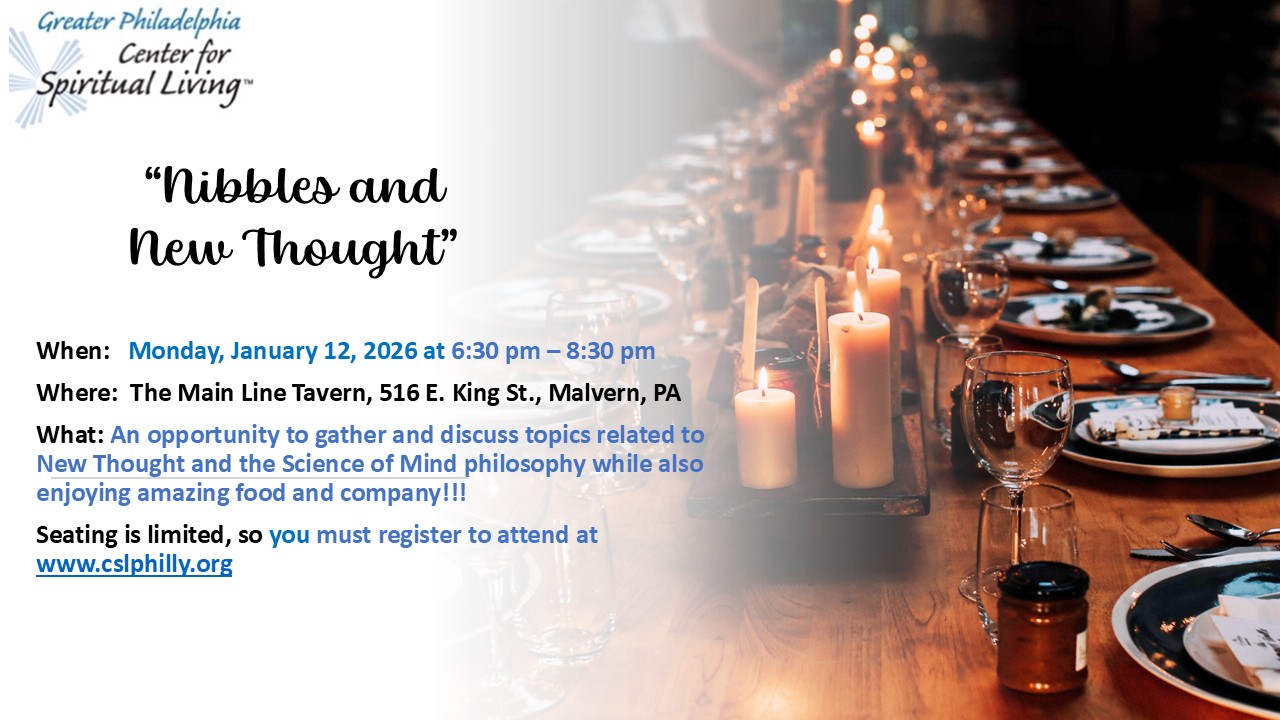 Registration for "Nibbles & New Thought", Monday, January 12, 2026 in person event