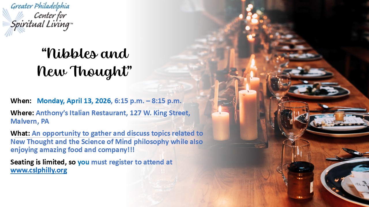 Registration for "Nibbles & New Thought", Monday, April 13, 2026 in-person event